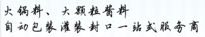 可按要求定做各類火鍋底料包裝機、火鍋底料灌裝生產線、辣椒醬、果醬、火鍋料包裝機生產線等醬料產品的包裝等,同時可配置理瓶機、貼標機、噴碼機、開箱、裝箱機、收瓶機等。